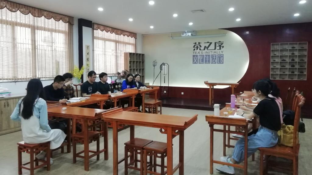 于茶艺室举行的汉语研究座谈会。座谈会由陈练军副院长主持,汉语言文字学专业全体研究生参加了本次座谈会。