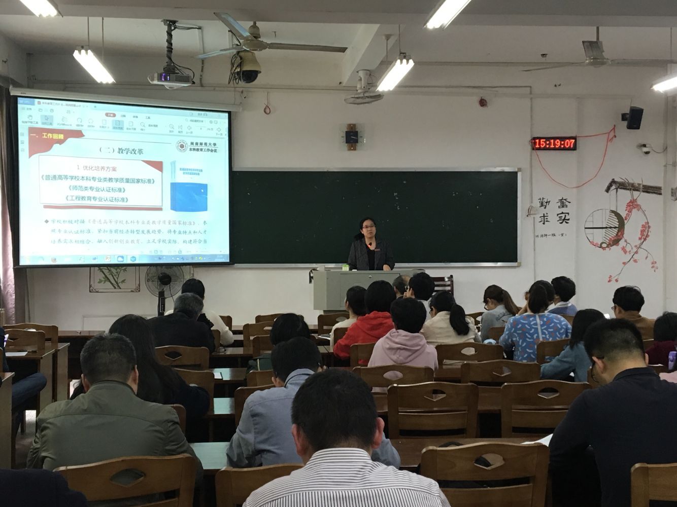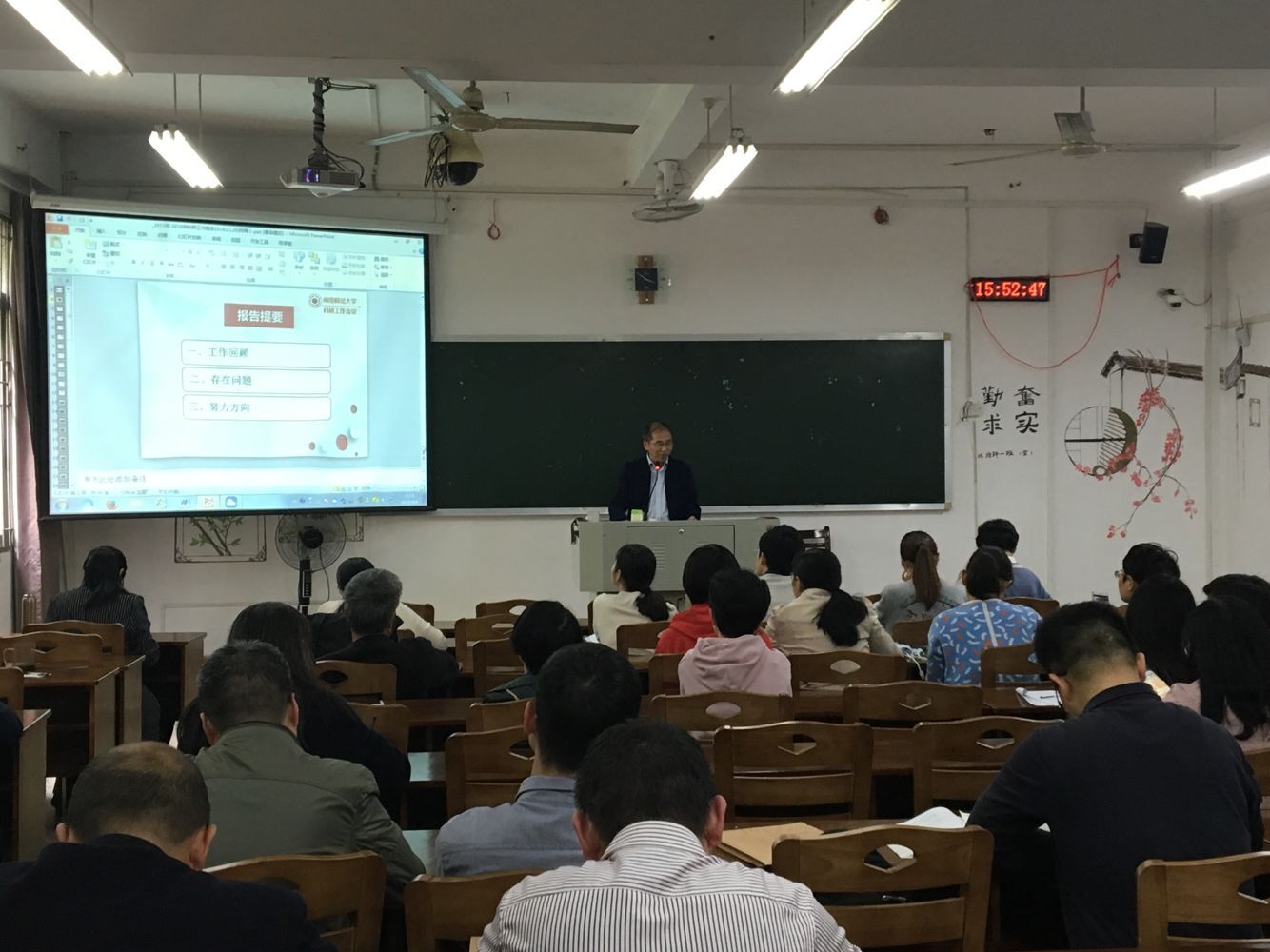 召开全体教职工大会,由院长黄金明、副院长杨娟娟分别传达了科研工作会议精神和本科教育工作大会精神。