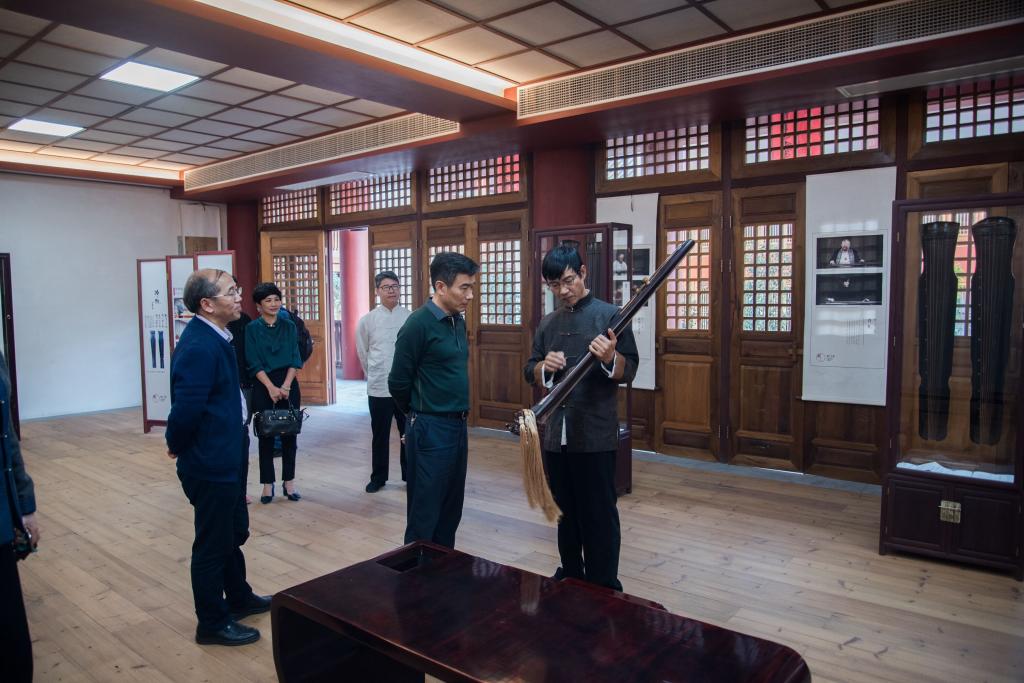 党委书记吴彬镪一行首先听取古琴文化院的介绍,实地参观考察了龙人书院斫琴工艺展、百琴堂、龙人乐堂等文化空间,感受龙人书院浓郁的传统文化氛围。在双方的交流会谈中,吴书记听取了谢院长对校企合作项目及基地建设进展汇报、深化校企合作的设想。吴书记对龙人古琴的发展理念以及文化情怀表示肯定与赞赏,并表示将携力促进双方的进一步合作,共同弘扬中华优秀传统文化。