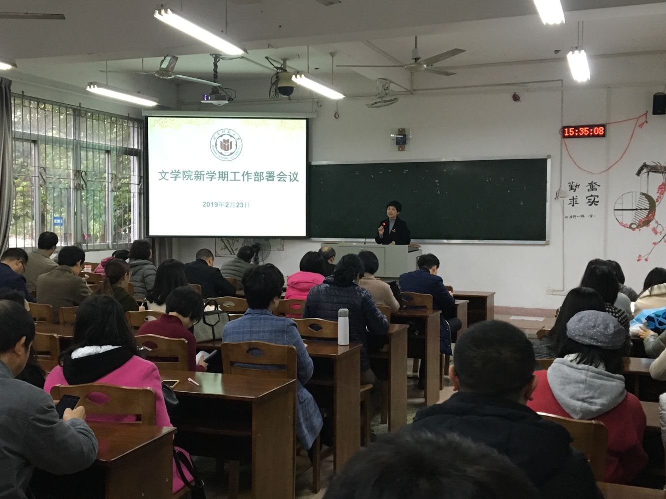 会上,赵丽霞书记首先传达了学校新学期工作部署会议精神,学习了校党委书记吴彬镪关于第二十七次全省高校党的建设工作会议精神、全省教育大会精神的工作指导,同时以课件的形式学习了校长李顺兴以《激流勇进 扎实推进学校改革向在纵深发展》为主题的讲话和党委书记吴彬镪以《奋力攻坚强内涵 用于担当抓落实》为主题的讲话,对全体教师在师资队伍建设、教学科研等方面作出了工作动员,同时强调了教学区宿舍区的安全管理与师生的人身安全保障工作,期望广大教师在新学期从严执教,砥砺前行,围绕新闽师建设目标,书写奋进之笔。随后,杨娟娟副院长对新学期教学检查工作进行了通知和布署,黄金明院长对学院重点工作和教师的能力提升方面提出了要求。