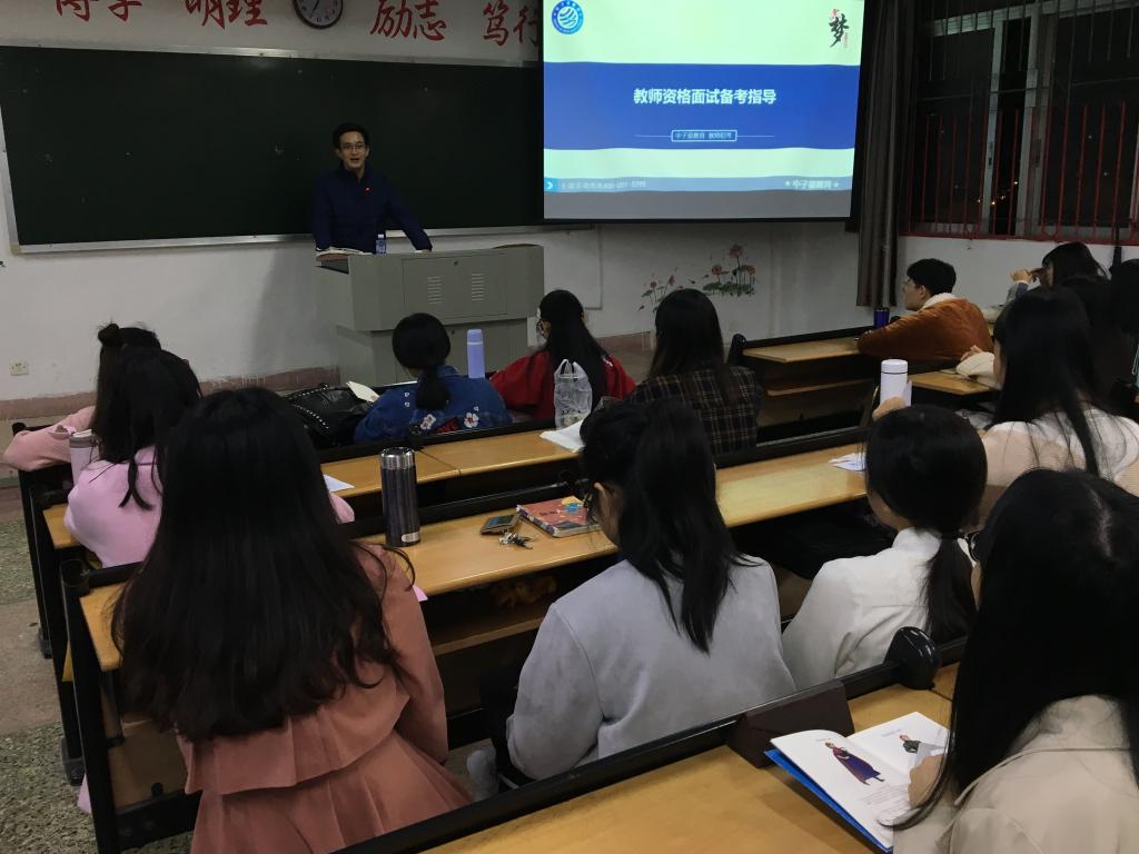 讲座在廖老师的祝福和同学们的掌声中结束。本次讲座,使同学们对教师资格证面试的流程和细节有了更为深入的了解,为即将参加面试的同学们增强了信心。