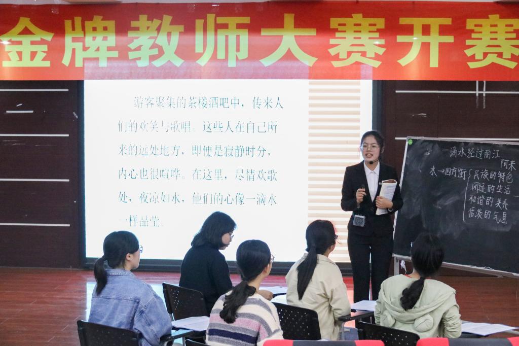 团委主办、学生会学习部承办的第12届金牌教师大赛决赛在博西梯一教室举行。本次大赛特邀漳州一中教师王龙祥、漳州二中教师刘敏、漳州三中教师陈晖贤、漳州五中教师郑丽玲与漳州实验中学教师刘丽彬担任评委,共有参赛选手、指导教师与学生代表百余人共同观赛。