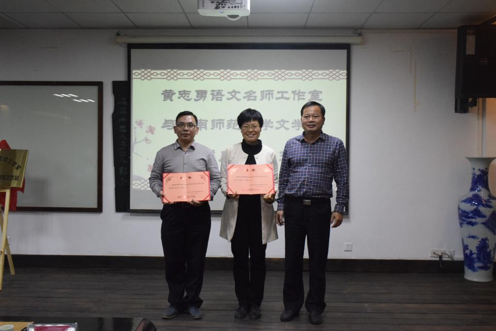 教师代顺丽、黄强军颁发名师工作室聘书。
