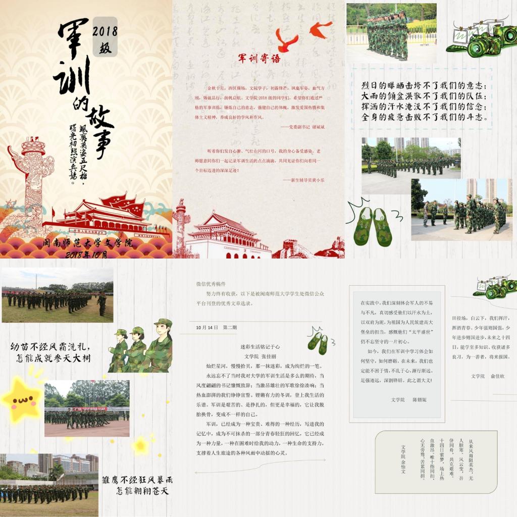 蝉联了“军训宣传先进单位”。学院围绕新生军训认真筹备宣传工作,通过报纸、杂志、微信、官网等平台,开展了形式多样、内容丰富的军训宣传活动。院宣传中心成立军训宣传工作小组,通力合作:一是博文编辑部每日审查军训文稿并推优上报;二是芗草编辑部制作印发军训宣传手册,创新工作特色,记录和推广宣传成果;三是新闻部拍摄采风以及云水网络工作室的微信推送,彰显天使动漫