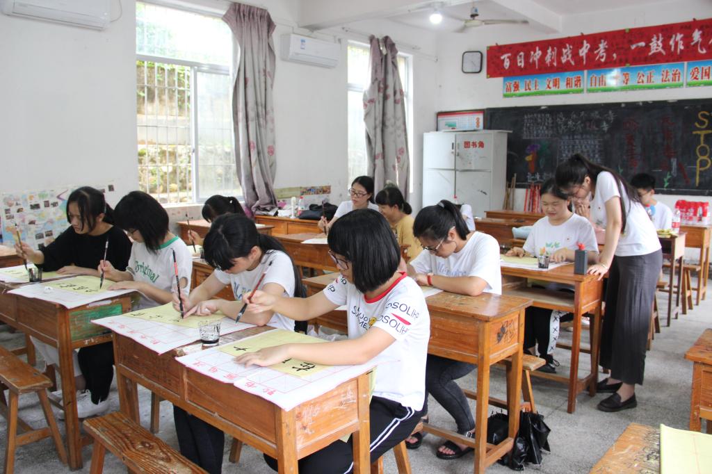 为进一步探索关爱留守儿童的有效机制,激励他们自强不息,做生活的强者,实践队本着“真诚、真心、真爱、真行动”的原则,精心设计关爱留守儿童活动,通过开展书法培训,一撇一捺传授国学精粹,通过阅读写作训练弥补其学业短板,设计趣味游戏走进孩子们的内心,寓教于乐,助力其身心健康成长。