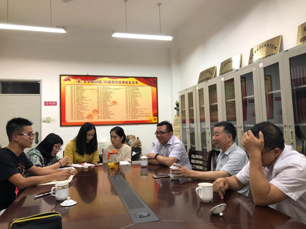 17级学科语文专业的研究生开展座谈会,参加会议的有代顺丽教授、王照年教授、黄强军副教授等。