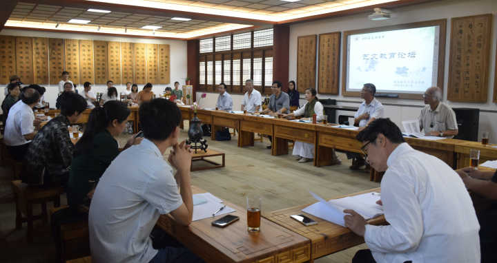 院长黄金明强调艺文教育是一个过程,大学生应掌握内化于心、外化于行的学习方式,从而构筑一种以文会友、以趣相投的交往世界。沈金耀深入分析开展传统文化艺能教育的原因,并提出艺能教育应该回归人文教育、重视基本文化技能、培养书画研究人才。陈瑞松以天使动漫
