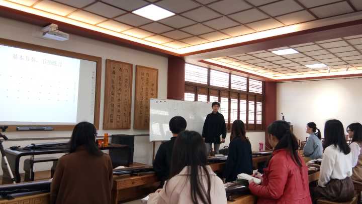 首日的实训内容包含学习古琴文化知识、基础乐理知识以及琴曲的自主练习。张锦冰带领学员打节拍,在实践中掌握音调高低、节奏快慢和节拍强弱等基础乐理知识;自主练习要求学员自学弹唱琴歌《清平乐》,并且交流学习心得。次日,学员对实训内容进行汇报演出,张锦冰一一进行专业指导,并演奏了《流水》和《梅花三弄》,为本次实训画上了圆满的句号。