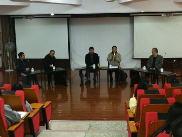 在博文楼西区一楼阶梯教室举办“诗与人,人与诗的对话”新诗座谈会,座谈会邀请诗人梁小斌、诗人白灵、安徽师范大学教授杨四平、台湾明道大学教授陈宪华和秭归县文联主席周凌云为主讲嘉宾。