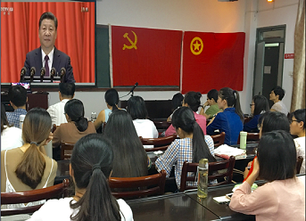 党委组织师生党员和团员代表在博东110收看中国共产党第十九次全国代表大会开幕式,集中认真学习习近平同志代表第十八届中央委员会所作的报告。报告会后师生畅谈了收看感想,并表示在之后各支部开展的研讨会中将继续深入学习思考。
