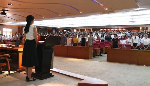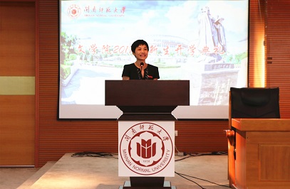 悠久的办学历史、雄厚的师资力量、完善的教学设施及特有的专业特色。赵丽霞书记还强调了自主学习的重要性,并向同学们提出了美好的祝福,希望广大新生养成稳重自持的品性,尽快融入大学校园生活。紧接着,15级学生代表曾祥泰、17级研究生代表相继发言,他们结合自身的经历,从生活、学习、思想等不同层面引导新生,鼓励新生做一个合格的中文人,充分的激发学习的热情,提高自身综合能力和提高思想素养都是必不可少的。随后,17级新生代表陈淑芹发言,她表示,作为天使动漫