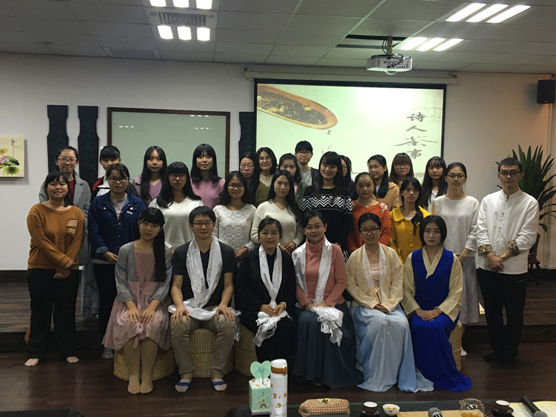 云水茶艺协会举办“诗人茶事”茶艺文化汇报演出,台湾明道大学国学研究所所长罗文玲教授莅临现场指导。把茶冷眼看红尘,随茶静心度春秋。校内师生慕名前来现场于茶人相会,共同品悟禅茶一味。
