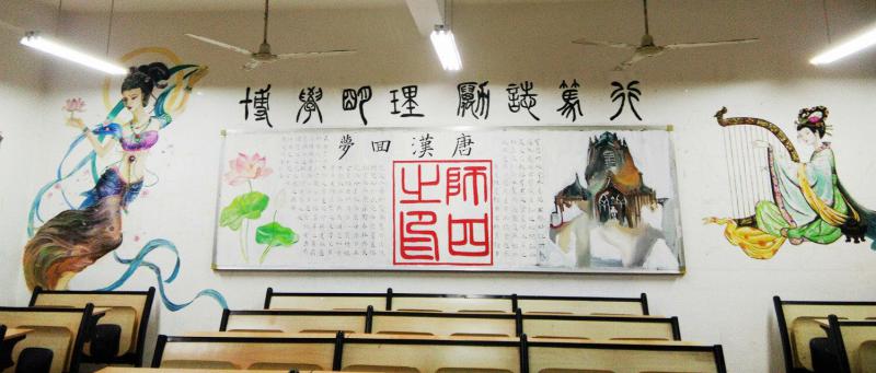 于11月25日-12月6日开展以“曲径轻歌去,犹思中国风”为主题的教室美化大赛。比赛邀请全体级辅导员老师为评委,15、16年级16个班集体参加比赛。