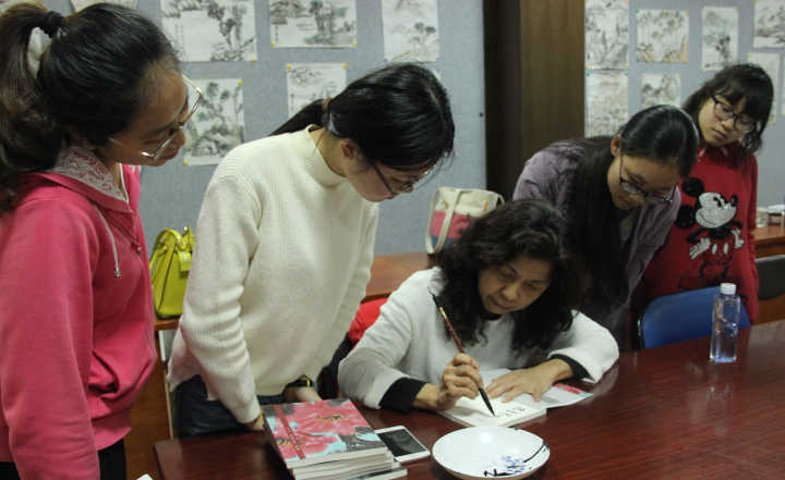 朵拉坦言对书画、写作、华文文学情有独钟,文学、艺术相伴让她的生活变得有境界、有趣味,“华文文学和水墨世界是我的精神故乡”便是她给予的高度评价。朵拉谈到,在马来西亚中国传统文化的学习氛围不够浓郁,出于真挚热爱,她花费大量时间、金钱和精力营造了自己的传统文化世界,她建议同学们也应当发现和呵护心中的那份热爱。