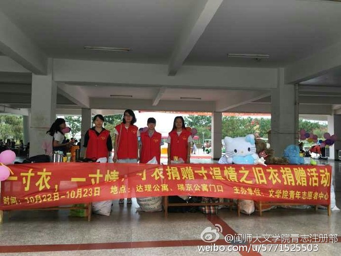青年志愿者中心于10月22-23日,分别在达理6-8号楼的中间空地、达理活动中心以及瑞京公寓门口,接连开展以“一寸衣,一寸情,寸衣捐赠寸温情”为主题的旧衣捐赠活动。