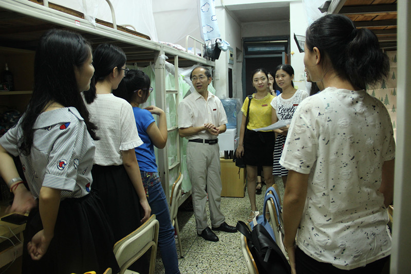 院长黄金明、党总支副书记赵丽霞以及各年级辅导员老师深入学生宿舍,走访了2016级新生宿舍,与新生亲切交流。领导们不仅关心新生的生活环境,更加关心同学的情感,悉心地询问每位同学的情况,了解每位同学的籍贯,关注每位同学的感受,事无巨细。每到一处,领导们都仔细查看寝室楼的各个角落,楼道死角的卫生保洁、寝室门窗和整体卫生情况、寝室配电设施的规范管理,甚至小到寝室阳台的物品工具摆放都成了老师们关注的焦点,嘱咐随行老师对发现的问题要进行全方位考虑以便更好解决,努力为广大学生提供一个更加舒适温馨的居住环境。