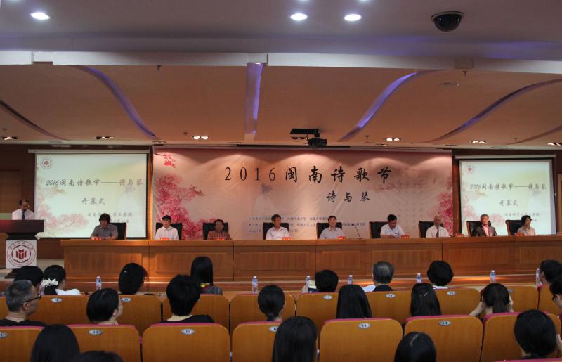 副校长肖庆伟首先致辞,他表示闽南文化历史悠久、与台湾文化血脉相连,与台湾高校联合举办“闽南诗歌节”对于促进两岸高校的文化交流、促进诗歌艺术的繁荣具有重大意义。福建省作家协会主席杨少衡则表示闽南地区人杰地灵,人才辈出,台湾与闽南更是一衣带水,关系源远流长,闽南诗歌节以诗为媒,以琴、茶、书、画会友,两岸学者、诗人、音乐家、书画家共话诗歌交流与发展,对增进两岸文化互相了解、增强两岸文化认同具有重大意义。随后,中国朦胧派代表诗人梁小斌、台湾著名诗人萧萧分别带来“寻找丢失的钥匙 ”、“心向天地开放,人与纯真往来”的主题演讲。