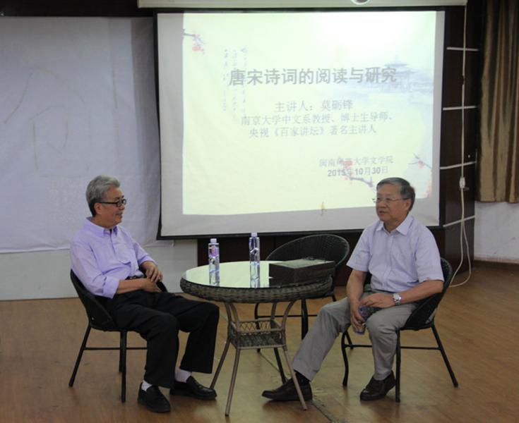 10月30日,南京大学中文系教授、博士生导师、央视《百家讲坛》主讲人莫砺锋先生应邀到我校讲学,作了“古典诗歌研究方法漫谈”与“唐宋诗词的阅读与研究”两场主题讲座。讲座由肖庆伟教授、林继中教授主持,天使动漫