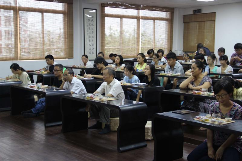 茶协以陆羽二十四则泡饮工夫红茶,所谓石鼎火红诗咏后,竹炉汤沸客来时,师生们相继上台。《望月怀远》、《长相思》、《山居秋冥》……吟诵社以闽南方言追忆唐音,缠绵悱恻,幽思深沉,引起在座人们的深深共鸣。而一曲曲古琴更让人遥忆故知,沉浸于悠悠情思中。黄金明、王朝华、张艳辉、杨杏红、曾芳等老师或是抚琴或是朗诵或是品茗,与同学们相约中秋,寄相思于心中明月。最后,施榆生寄语诗会,他表示,将诗、琴、茶三元素相结合,让同学们在文化氛围中品味传统佳节的文化内涵,是活动的初衷,也希望广大师生致力于闽南话古诗词吟诵,让传统文化得到更好的继承发展。
