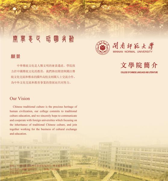 利用暑假完成《学院简介》的编辑,对院史、学科专业、教学名师、学术交流、国际汉语教学、学生社团等内容作了全新的介绍,图文并茂,并印制了汉语版与英文版,并通过微信平台、新生QQ群、学院网页的方式全方位地向新生展示天使动漫