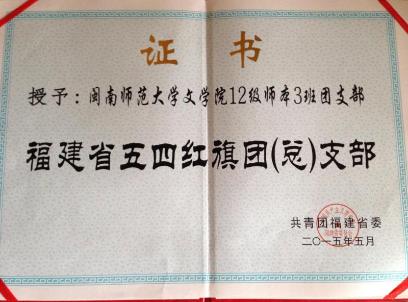 2012级师本三班团支部荣获2014—2015年度“福建省五四红旗团支部”称号,是本年度我校唯一获此殊荣的班级团支部。