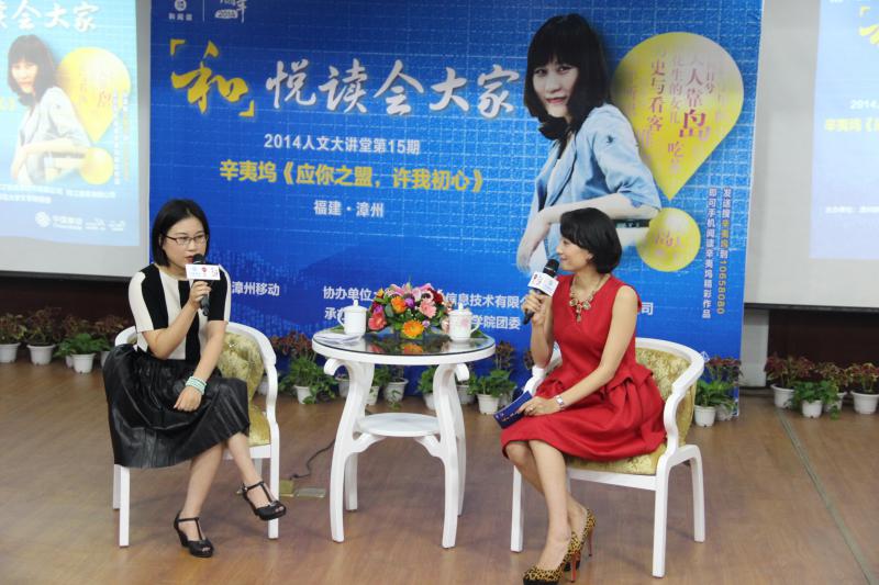 见面会上,辛夷坞与大家分享了自己的读书心得,讲述了自己的创作经历,并谈到了作品的创作背景。对于大家比较关心的小说中人物的原型问题,辛夷坞指出,作家早先的作品会有较多的自己的影子,但后面就越来越少。自己书中的人物很多是来源于身边的小故事,写的时候会投入其中,故事中的人物设置好时,就是鲜活的,书中的人物指引着她去写。