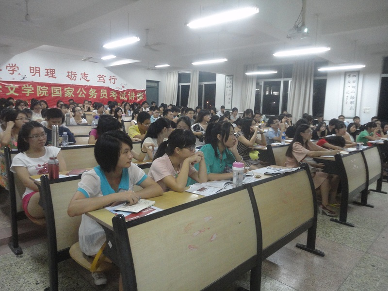 刘凯老师首先结合现实对就业形式进行了分析,分析了公务员的职业优势,以及国家公务员的历年考情,接着对题型和方法做了仔细的解读,在此过程中,以答题有奖的方式互动,在座同学积极抢答,现场气氛十分活跃。刘老师结合历年真题分析解题方法,落实到数字推理,判断推理,言语理解与表达等题型,并针对速算这一方法进行了具体的练习。最后阶段化备考压轴:一、模块学习阶段,二、强化提高阶段,三、模块测试阶段,四、调整冲刺阶段。整个讲座思路清晰,详略得当。