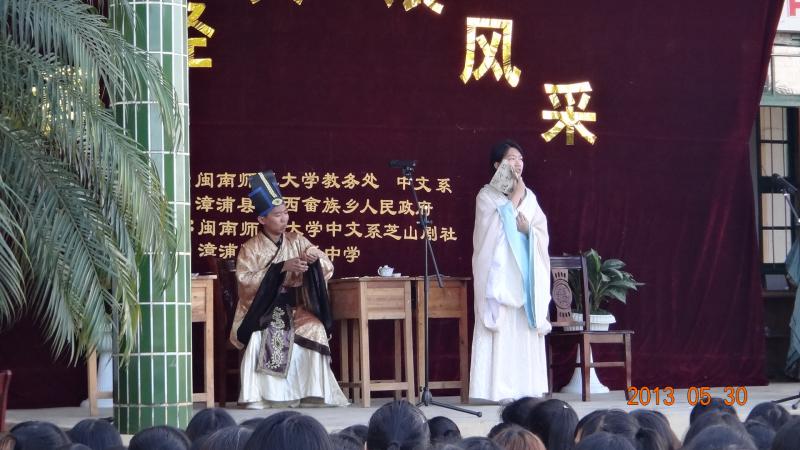 教务处、中文系主办,中文系芝山剧社承办的“吟中华经典·展诗人风采”课本剧演出团队前往漳浦赵家堡举行宋代诗词吟诵会。汴京遗梦的悲怆、爱国诗人的悲愤随着一声声掷地有声的吟诵在古城灰瓦前情景交融,突破了我校演义中华经典的实践方式。