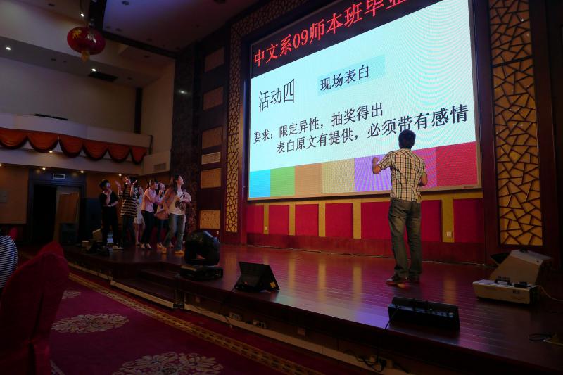 晚宴现场热烈的气氛,老师也深受感染。黄金明主任献上一首《只有分离》,赢得阵阵掌声。施榆生书记用闽南语吟诵《峨眉山月歌》,教师代表刘新文、王朝华、邱春晖也上台为毕业学子献唱。肖副校长一曲《为了谁》,把全场气氛推向高潮。晚宴过程中,学生代表也带来了丰富多彩的节目,表演大屏幕展播的毕业视频以及校园风光记录片,再现了同学们在师院学习生活的点点滴滴,记录了毕业生对母校、对老师的感恩与祝福。