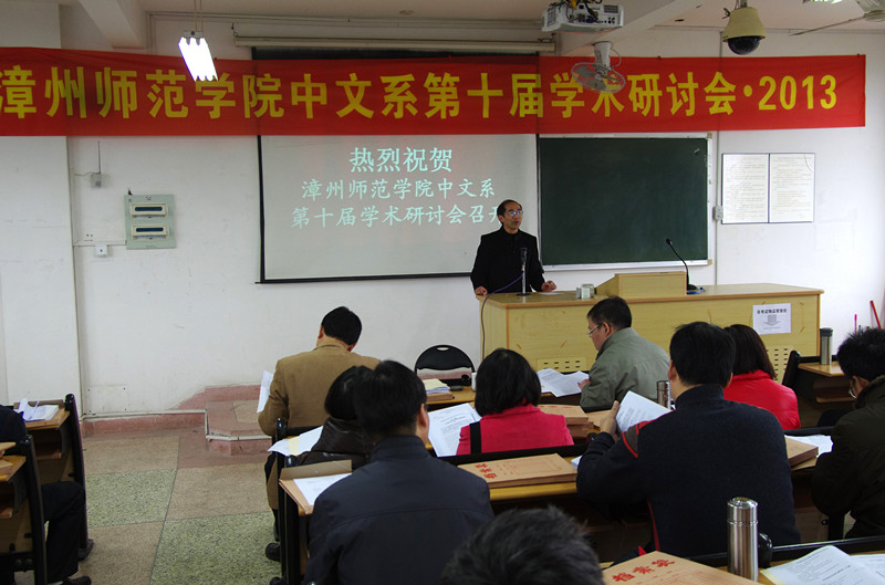 2013年1月12日上午8点,漳州师范学院中文系第十届学术研讨会在博文楼东区406室隆重举行。漳州师范学院副院长肖庆伟、研究处处长祖国颂、系主任黄金明、系党委书记施榆生及中文系全体教师出席了本次研讨会。此次研讨会由中文系副主任林大志主持,特邀嘉宾有林继中教授、汤漳平教授等。