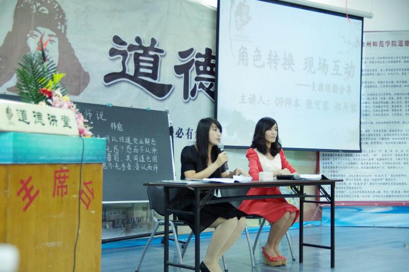 为弘扬师德,让师爱升华。11月5日19时30分,一场以“学高为师,德高为范”为主题的道德讲堂活动于达理活动中心三楼顺利举行。院党委宣传部部长陈再生,中文系党总支书记施榆生,党总支副书记赵丽霞及120名师范生共同参加了本次活动。
