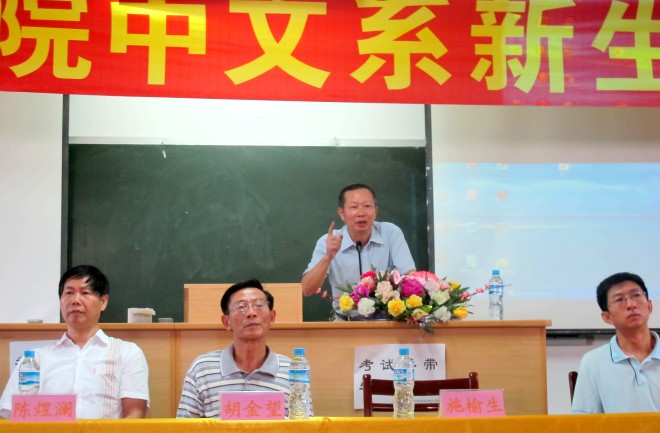9月11日8时,“中文系2011级新生开学典礼暨安全教育”于博西梯二教室拉开序幕。开学典礼由系团委副书记陈文婷主持,中文系主任胡金望,系党总支书记施榆生、系副主任陈煜斓、系副主任林大志、系党总支副书记赵丽霞等出席了本场活动。