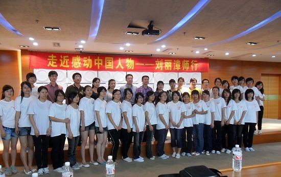 在鲜花和掌声的簇拥下,一身朴素的刘丽走上台,并向同学们讲述了她14岁时辍学外出打工的故事:从贫困的山村走出,她经历了许多窘境,辗转了很多城市,尝试了各种工作,一路坚持下来,“不要压缩自己的梦想”成为了她内心的口号。作为长女的她希望更多的孩子能够上得起学,先是资助了老家的20多名贫困生,随后又加入厦门春蕾计划。至今,她已经资助了上百位学生,并建立了刘丽助学中心。刘丽哽咽的叙述感染了场下观众,学生纷纷动情落泪。作为一名洗脚妹,她用自己的经历告诉同学们,从必须做到喜欢做,这就是一种责任和成长。她与大家分享了自己的心得:想做好一件事,只要坚持到底,就一定能找到成功的路。