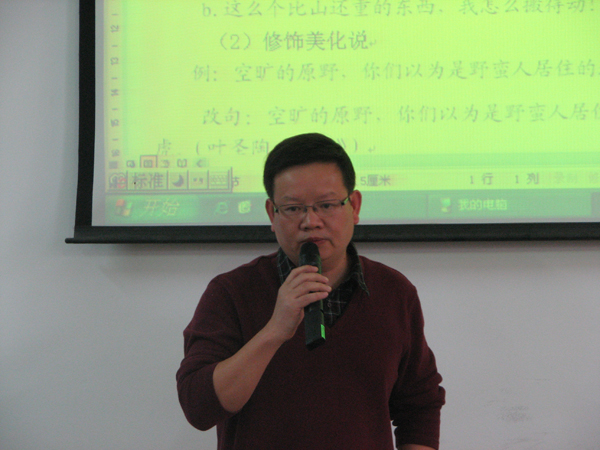 副院长、博士生导师曾毅平教授应中文系系邀请,作了题为“修辞的多重属性及其研究形态”的讲座。中文系研究生和部分老师聆听了此次讲座。曾教授的讲座分四个部分:修辞观的发展,修辞的属性,修辞学研究的主要形态,修辞学研究的新形态——社会真实事件的修辞学研究。曾教授深入浅出的讲解、丰富多彩的例证、独特新颖的见解与听众精彩的互动,为本次讲座营造了活跃的学术氛围。讲座带来了学科前沿信息,使师生受益匪浅。整场讲座掌声不断,深受欢迎。