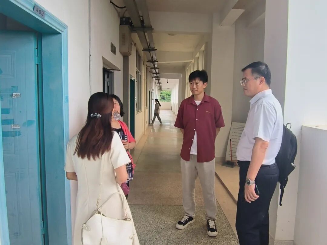 除课堂听课外,院领导还对教学保障情况进行“地毯式”检查:逐一测试教室多媒体设备的投影、音响效果,查看黑板板书清晰度,检查教室卫生死角及桌椅摆放情况,并随机询问新生对课堂纪律、教学环境的感受。“多媒体设备运行流畅,教室采光很好,坐着听课很舒服!”新生的反馈让在场领导放心。针对发现的个别问题,现场联系学校部门,确保教学保障“无缝衔接”。