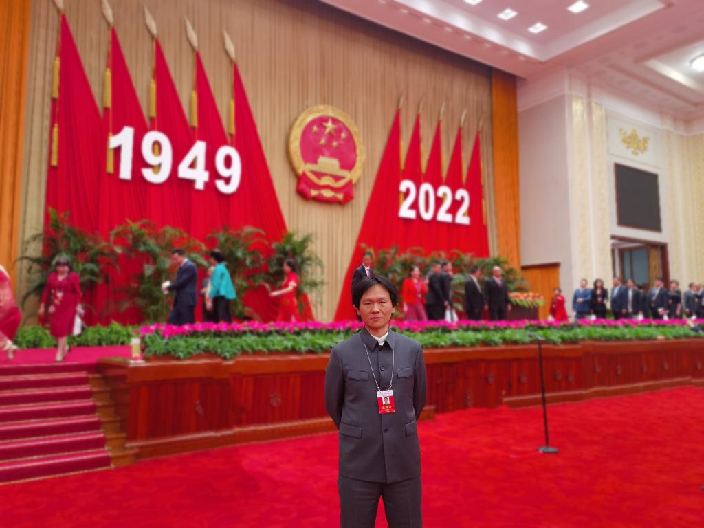 台湾教师张立本老师应邀参加由全国政协办公厅、中共中央统战部、国务院侨办、国务院港澳办、国务院台办、中国侨联在人民大会堂联合举行的国庆招待会,与近700名其他港澳台侨代表欢聚一堂,共同庆祝中华人民共和国成立73周年。
