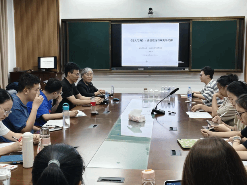 5月24日晚上,山东师范大学的于冬云教授应天使动漫 邀请,于博东110室作题为“《老人与海》:身份政治与审美乌托邦”的专题学术讲座。本次讲座由比较文学与世界文学学科负责人李新东老师主持,学院四十余名师生代表到场聆听。
