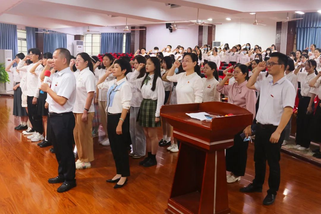 学生第六党支部何诗茹作为毕业生党员代表发言。她表示,作为新时代大学生党员,要保持勇气锐气朝气、敢于拼搏、甘于奉献。学生党员在学生时代是榜样、是旗帜。当迈向新征程时,也要以实际行动践行使命担当,创造无愧于青春、不负于母校的人生篇章。随后,赵丽霞、谢斌斌代表学院党委对毕业班党支部支委进行表彰,并带领全体毕业生党员重温入党誓词。