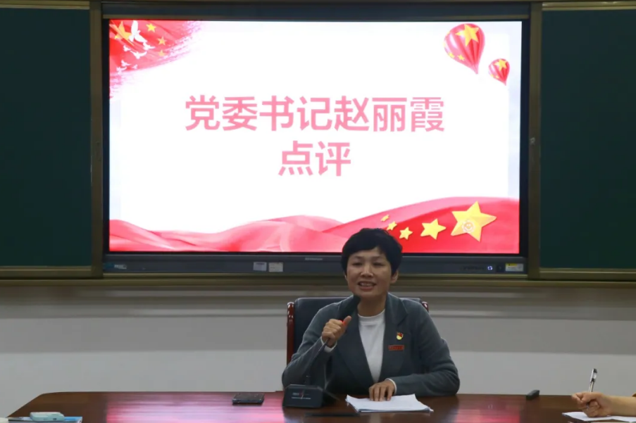 赵丽霞指出,过去的一年里,各支部紧扣新时代党的建设总要求,扎实开展学习贯彻习近平新时代中国特色社会主义思想主题教育,积极投身于学院、学校的发展大局和各项中心任务中,党建工作取得一定的成效。她强调,党支部书记是支部党建工作“第一责任人”,要旗帜鲜明讲政治,步调一致向前进,在深刻领悟习近平新时代中国特色社会主义思想,时刻对标落实上级党委决策部署中做表率,发挥支部书记“火车头”作用;要以“三会一课”为着力重点,以深化“一支部一特色”建设为抓手,以融合赋能为导向,不断提升党建工作质量,建强党组织战斗堡垒;要聚焦问题,狠抓落实,在日常教学科研中把党员身份亮出来、先进标尺立起来、先锋形象树起来,当好学院管理建设的得力助手和师生群众信赖依靠的温暖组织。