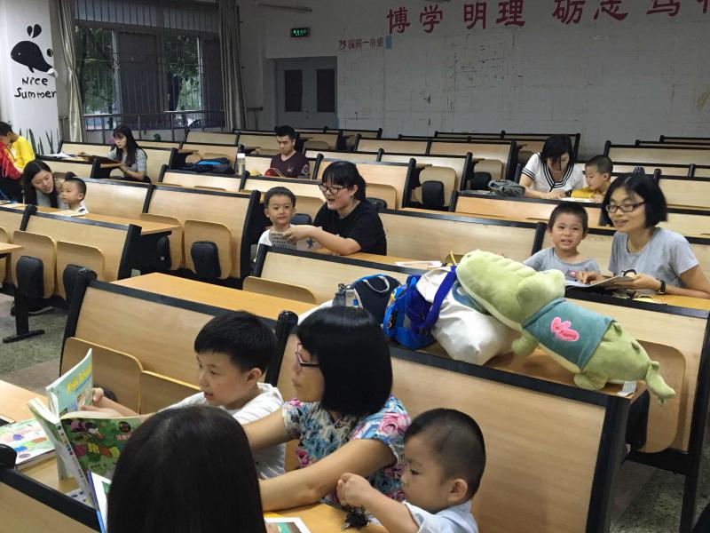 读书之乐何处寻,数点梅花天地心。本次活动采用一对一方式开展,引导学生根据绘本、书籍上的图画故事,看图说话,开辟了一方儿童的天地。志愿者们根据儿童特点,鼓励和支持学生自编故事,为自编的故事配上图画,开展“学生自制图画书创意活动”。并选择深受幼儿喜欢的绘本,进行创造性地编排,辅以富有创意的道具和背景,如:《青蛙和蟾蜍》、《百岁童谣》、《穿靴子的猫》等。活动现场气氛轻松活跃,寓教于乐。
