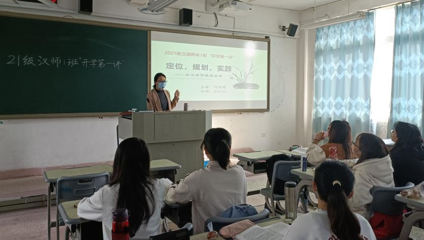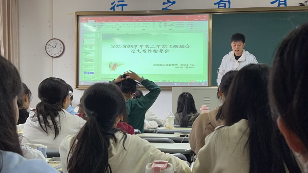 22级汉语国际教育班在3月21日举行开学第一课班会,班主任在班会上讲解论文写作的规范,并指导学生今后的学习规划。