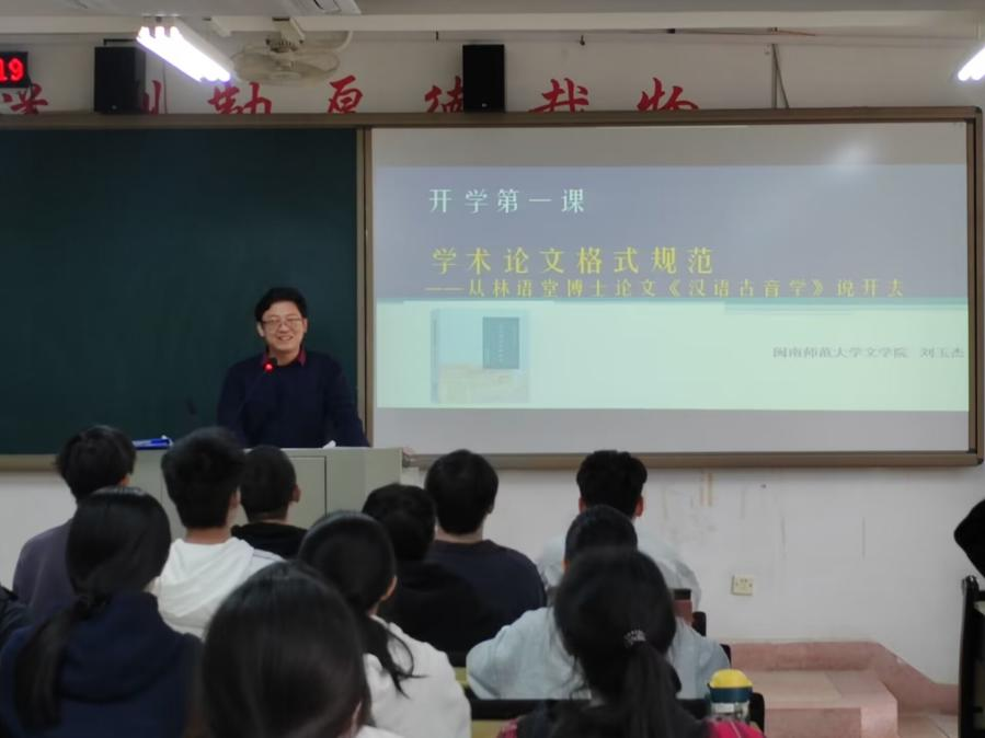 22级汉语1班班主任以“学术论文格式规范——从林语堂博士论文《汉语古音学》说开去”为题,鼓励学生从大学一年级开始就注重培养论文格式规范意识,为日后的学术研究打下坚实的基础。