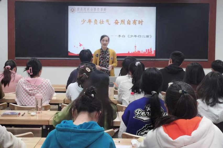 21级汉师2班主任围绕“少年负壮气,奋烈自有时”的主题讲授第一课,希望青年学子“青骥奋蹄向云端”。