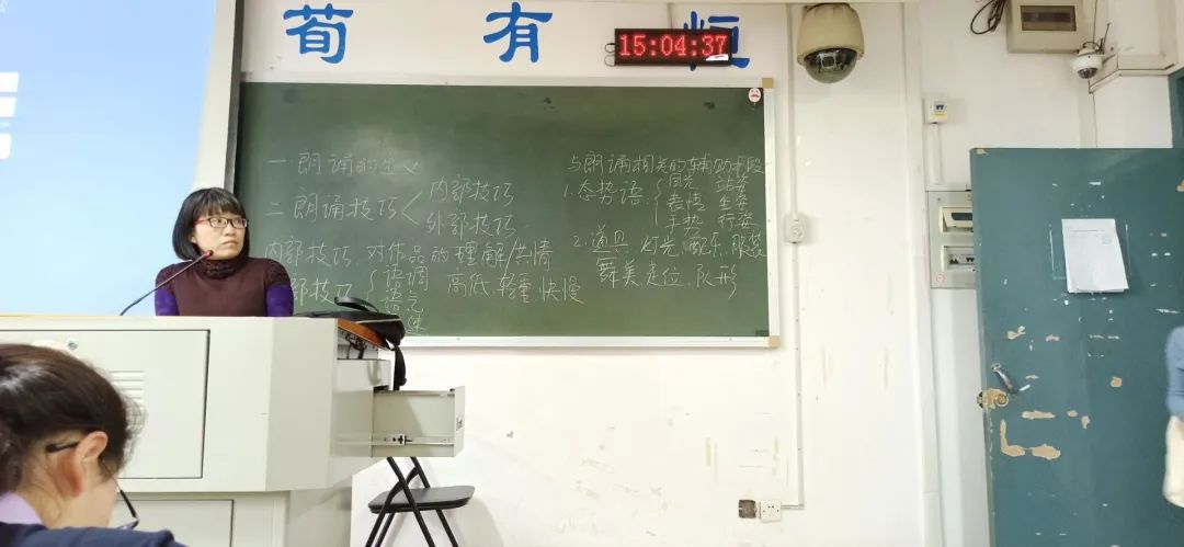 涂敏华从有声的语言表达和无声的文字表达、朗诵如何把握情感、外部表达技巧和内部表达技巧等内容展开讲述。涂敏华从自身朗诵经验和指导学生比赛的经验出发,深入浅出地传授朗诵技巧。涂敏华总结学生在朗诵时常出现的几个问题,指导学生要根据文本控制声音的大小,音速的快慢以及声调的高低,在通过对文本的细致理解后将情感融入朗诵。本次讲座再现了朗诵表达艺术的独特魅力,在场学生沉浸于朗诵技巧的学习氛围中,收获颇丰。