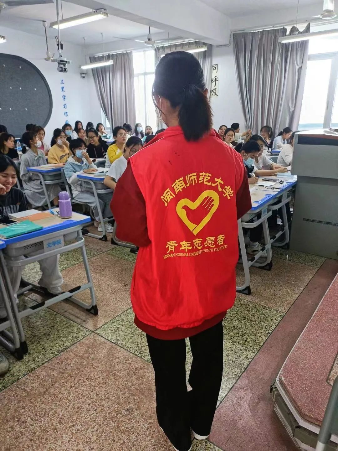 活动过程中,负责学风督导的值班人员主要针对各班级的课堂学习纪律和文明礼仪两个方面进行文明督导,其中包括课堂考勤登记、遵守课堂纪律、佩戴校徽等情况。