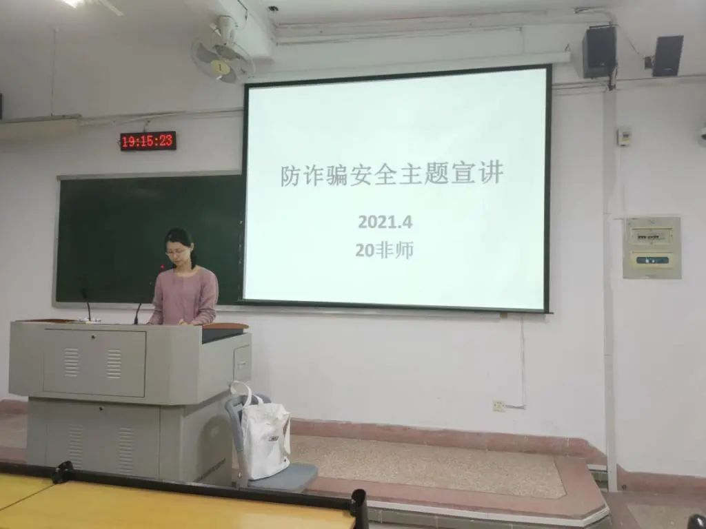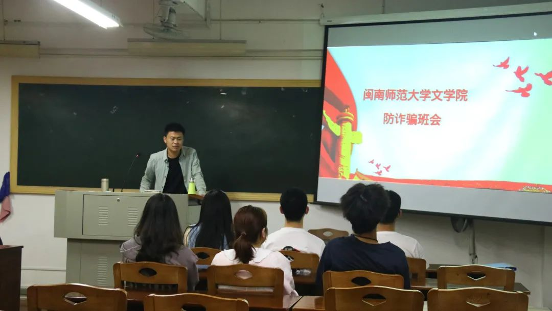 班会引导,树立日常护盾。辅导员组织安全教育防诈骗班会,结合漳州地区大学生被网络诈骗的事例,生动地讲解防诈骗知识,加深了学生们对诈骗的识别,树立自我保护意识。学院主要学生干部、党员学生化身防诈骗宣传员,步步加深学生的防诈骗意识。