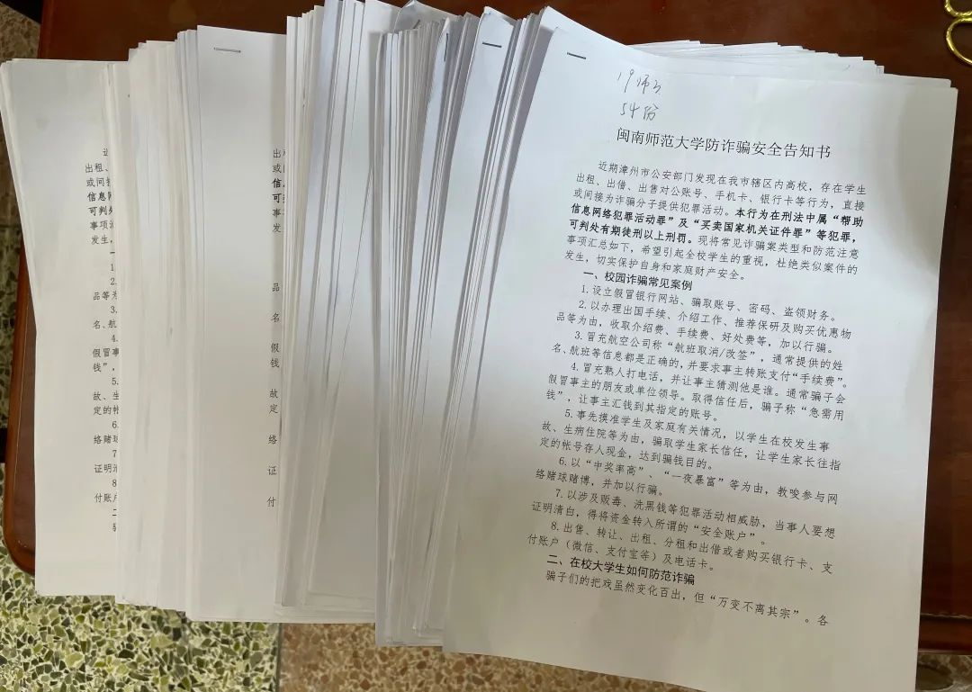 安全告知,敲响心中警钟。通过下发安全告知书,微信专题系列推文,将常见诈骗案类型和防范注意事项汇总,进行第一步的宣传教育,以此引起全体学生的重视,敲响防诈骗警钟。