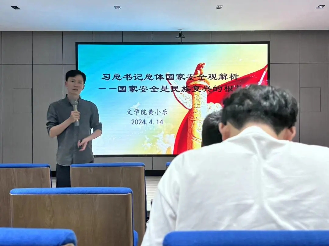 黄小乐等六名团干以“习近平总书记总体国家安全观解析——国家安全是民族复兴的根基”为题,从党的二十大报告切入,围绕着正确理解和把握总体国家安全观、当前我国国家安全面临的风险与挑战、坚持总体国家安全观,维护重点领域国家安全三方面展开宣讲。