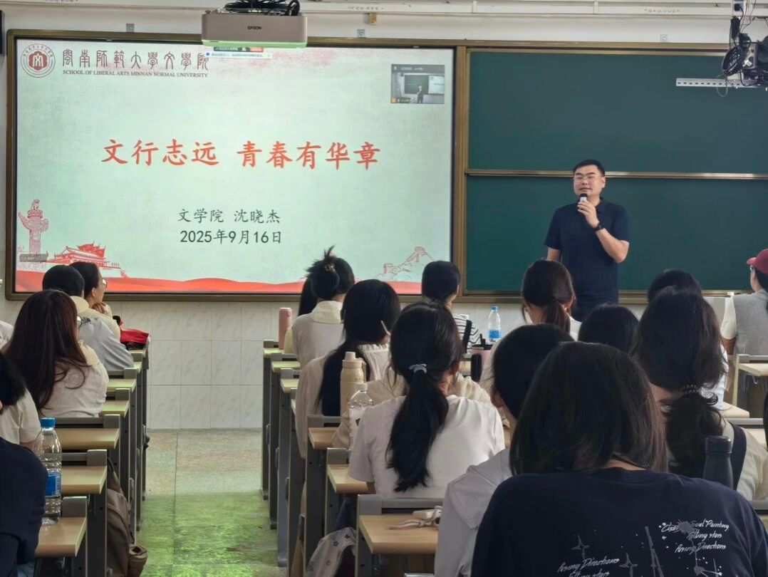 党委副书记沈晓杰于圆山旧教学楼104为2025级新生讲授题为《文行致远,青春有华章》的“开学第一课”。