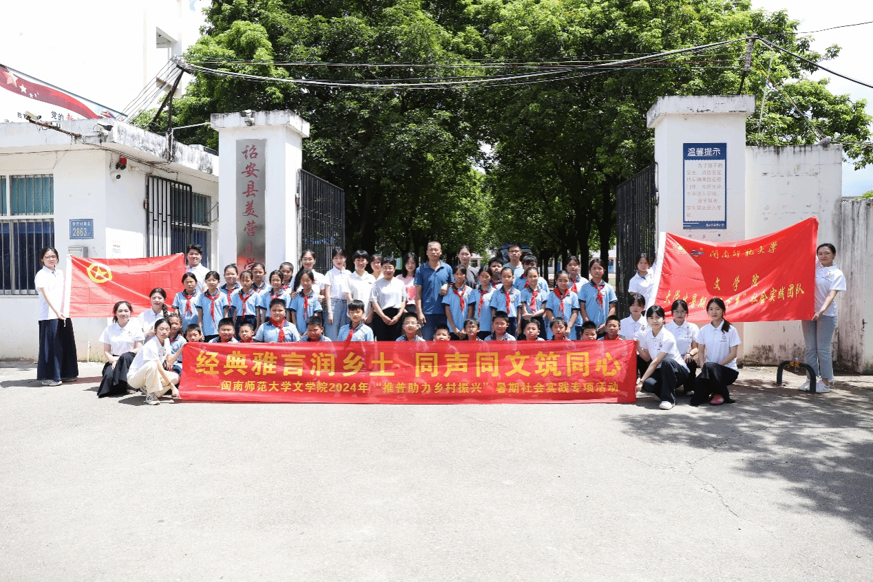 实践队于7月6日至8日前往福建省最大的少数民族村——漳州市诏安县西潭镇美营畲族村,以诏安县美营小学学生及周边民众为主要对象,开展“经典雅言润乡土,同声同文筑同心”社会实践活动。实践队通过开展经典进校园、普通话培训、畲族文化调研、“美营三宝”调研、“兵支书”采访调研等活动,在实践中推广普通话,传习经典,深入挖掘畲族文化,增强民族认同。